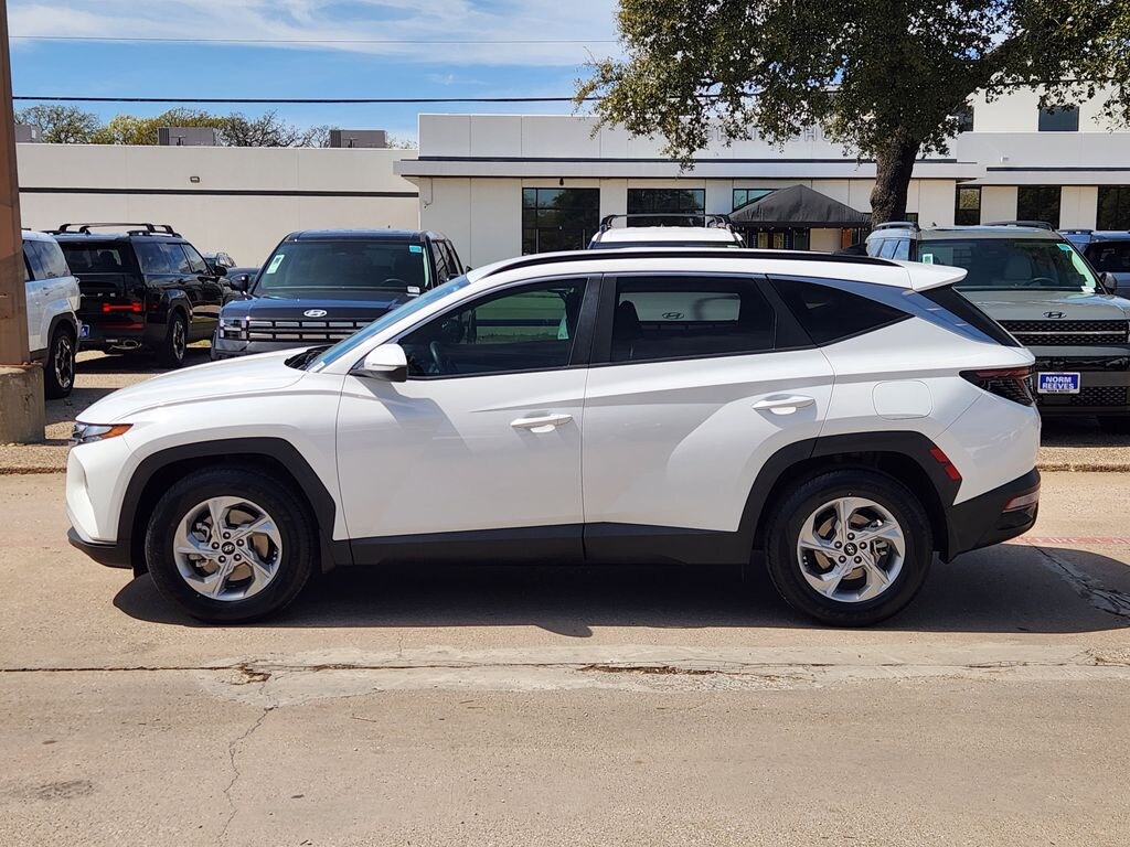 This 2023 Serenity White Pearl Hyundai Tucson SEL FWD is well equipped and includes these features and benefits: Option Group 01, Hyundai Certified, 3.648 Axle Ratio, 4-Wheel Disc Brakes, 6 Speakers, ABS brakes, Air Conditioning, Alloy wheels, AM/FM radio: SiriusXM, Apple CarPlay & Android Auto, Auto High-beam Headlights, Brake assist, Bumpers: body-color, Cargo Cover, Cargo Net, Cargo Tray, Carpeted Floor Mats, Delay-off headlights, Driver door bin, Driver vanity mirror, Dual front impact airbags, Dual front side impact airbags, Electronic Stability Control, Emergency communication system: Blue Link Connected Car Service (3-year complimentary subscription), Four wheel independent suspension, Front and Rear Mudguards, Front anti-roll bar, Front Bucket Seats, Front Center Armrest, Front reading lights, Fully automatic headlights, H-Tex Seat Trim, Heated door mirrors, Heated Front Bucket Seats, Heated front seats, Illuminated entry, Low tire pressure warning, Occupant sensing airbag, Outside temperature display, Overhead airbag, Overhead console, Panic alarm, Passenger door bin, Passenger vanity mirror, Power door mirrors, Power driver seat, Power Liftgate, Power steering, Power windows, Radio data system, Radio: AM/FM/HD/SiriusXM Audio System, Rear anti-roll bar, Rear seat center armrest, Rear window defroster, Rear window wiper, Remote keyless entry, Roof rack: rails only, Security system, Speed control, Split folding rear seat, Spoiler, Stain & Odor Resistant Cloth Seat Trim, Steering wheel mounted audio controls, Tachometer, Telescoping steering wheel, Tilt steering wheel, Traction control, Trip computer, Turn signal indicator mirrors, Variably intermittent wipers, and Wheels: 17" x 7.0J" Alloy. Certified. Hyundai Details: