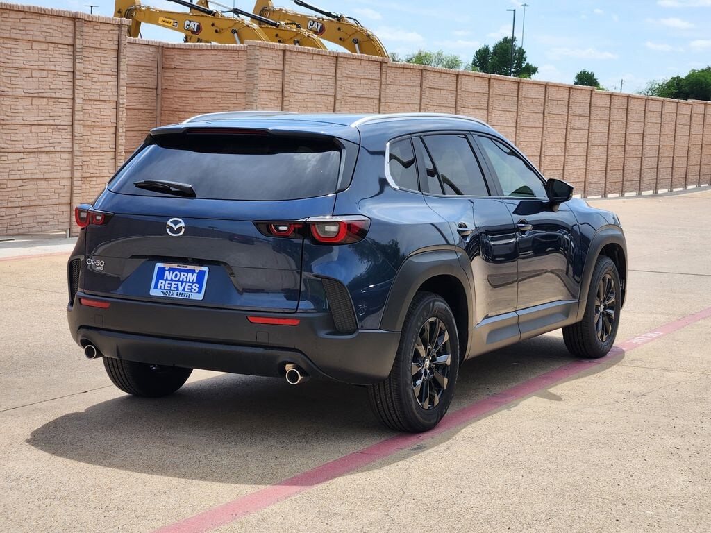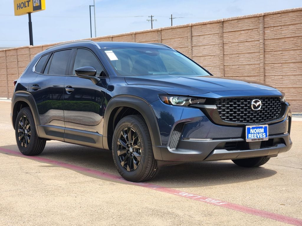 This 2026 Ingot Blue Metallic Mazda CX-50 2.5 S Select AWD is well equipped and includes these features and benefits: Cargo Package, 4-Wheel Disc Brakes, 8 Speakers, ABS brakes, Air Conditioning, Alloy wheels, AM/FM radio, AppLink/Apple CarPlay and Android Auto, Auto High-beam Headlights, Automatic temperature control, Brake assist, Bumpers: body-color, Carpet Cargo Mat, Delay-off headlights, Driver door bin, Driver vanity mirror, Dual front impact airbags, Dual front side impact airbags, Electronic Stability Control, Emergency communication system: MAZDA CONNECT, Exterior Parking Camera Rear, Front anti-roll bar, Front Bucket Seats, Front Center Armrest, Front dual zone A/C, Front reading lights, Front wheel independent suspension, Fully automatic headlights, Half Leatherette Seat Trim, Illuminated entry, Knee airbag, Leather Shift Knob, Leather steering wheel, Low tire pressure warning, Occupant sensing airbag, Outside temperature display, Overhead airbag, Overhead console, Panic alarm, Passenger door bin, Passenger vanity mirror, Power door mirrors, Power steering, Power windows, Radio data system, Radio: AM/FM/HD 8-Speaker Audio Sound System, Rain sensing wipers, Rear seat center armrest, Rear window defroster, Rear window wiper, Remote keyless entry, Speed control, Speed-sensing steering, Split folding rear seat, Spoiler, Steering wheel mounted audio controls, Tachometer, Telescoping steering wheel, Tilt steering wheel, Traction control, Trip computer, Turn signal indicator mirrors, Variably intermittent wipers, and Wheels: 17" x 7J Aluminum Alloy Black Metallic Finish.