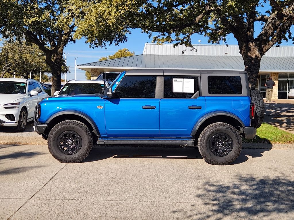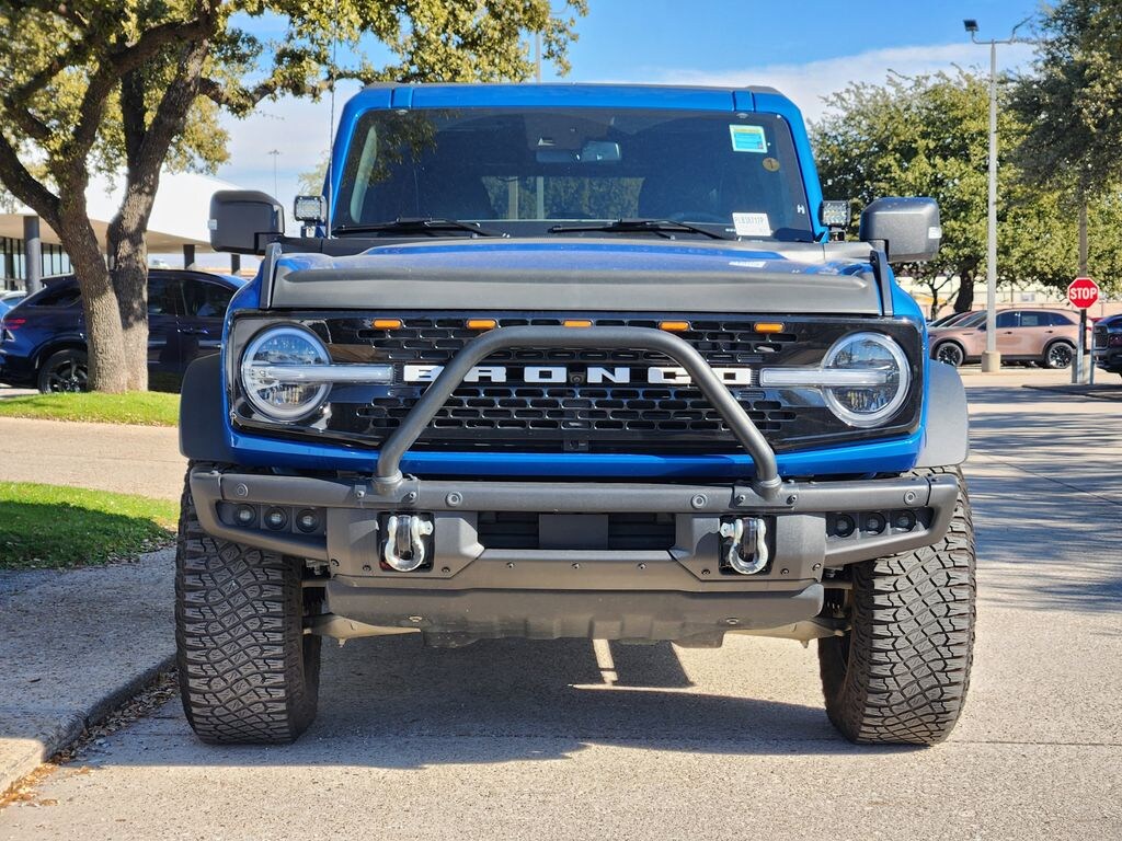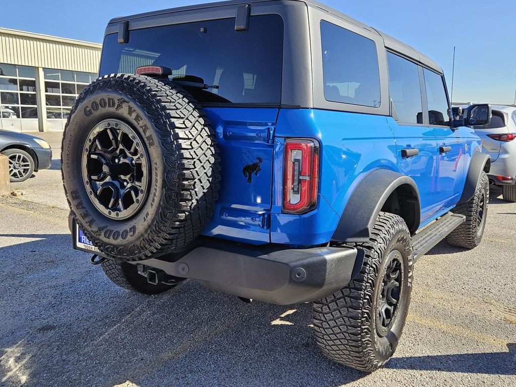 This 2023 Velocity Blue Metallic Ford Bronco Wildtrak 4WD is well equipped and includes these features and benefits: Equipment Group 354A Lux Package (12" LCD Capacitive Touchscreen w/Swipe Capability, 2 Smart Charging USB Ports In Dashboard, 360-Degree Camera, Adaptive Cruise Control, Additional Sound Deadening, Connected Built-In Navigation, Evasive Steering Assist, Front Parking Sensors, Heated Steering Wheel, Information on Demand Panel, Radio: B&O Sound System by Bang & Olufsen, Sideview Mirrors, Universal Garage Door Opener, and Wireless Charging Pad), Bronco Wildtrak, 2.7L EcoBoost V6, 4WD, ABS brakes, Compass, Electronic Stability Control, Heated door mirrors, Illuminated entry, Low tire pressure warning, Remote keyless entry, Traction control, 4-Wheel Disc Brakes, 7 Speakers, Air Conditioning, AM/FM radio: SiriusXM with 360L, AM/FM Stereo, Auto High-beam Headlights, Brake assist, Delay-off headlights, Driver door bin, Driver vanity mirror, Dual front impact airbags, Dual front side impact airbags, Emergency communication system: 911 Assist, Exterior Parking Camera Rear, Front anti-roll bar, Front Bucket Seats, Front Center Armrest, Front reading lights, Front wheel independent suspension, Fully automatic headlights, Integrated roll-over protection, Occupant sensing airbag, Outside temperature display, Overhead airbag, Overhead console, Panic alarm, Passenger door bin, Passenger vanity mirror, Power door mirrors, Power steering, Power windows, Radio data system, Security system, SiriusXM Radio w/360L, Speed control, Split folding rear seat, Steering wheel mounted audio controls, SYNC 4, Tachometer, Telescoping steering wheel, Tilt steering wheel, Trip computer, and Variably intermittent wipers. Bronco Wildtrak, 2.7L EcoBoost V6, 4WD, 12" LCD Capacitive Touchscreen w/Swipe Capability, 2 Smart Charging USB Ports In Dashboard, 360-Degree Camera, ABS brakes, Adaptive Cruise Control, Additional Sound Deadening, Compass, Connected Built-In Navigation, Electronic Stability Control, Equipment Group 354A Lux Package, Evasive Steering Assist, Front Parking Sensors, Heated door mirrors, Heated Steering Wheel, Illuminated entry, Information on Demand Panel, Low tire pressure warning, Radio: B&O Sound System by Bang & Olufsen, Remote keyless entry, Sideview Mirrors, Traction control, Universal Garage Door Opener, Wireless Charging Pad.
