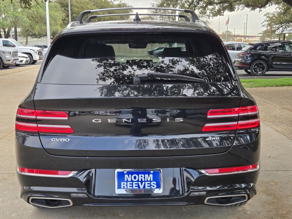 This 2023 Vik Black Genesis GV80 2.5T AWD is well equipped and includes these features and benefits: Advanced Package (Blind-Spot View Monitor, Leather Seating Surfaces, Monobloc Front Brakes, Option Group 02, Panoramic Sunroof, Parking Collision-Avoidance Assist, Radio: AM/FM/SiriusXM/HD Lexicon Prem Audio System, Remote Smart Parking Assist, Surround View Monitor, and Ventilated Front Seats), GV80 2.5T, 2.5L DOHC, 8-Speed Automatic, AWD, Brown/Beige Leather, 12 Speakers, 4-Wheel Disc Brakes, 4.363 Axle Ratio, ABS brakes, Air Conditioning, Alloy wheels, AM/FM radio: SiriusXM, Android Auto & Apple CarPlay, Anti-whiplash front head restraints, Auto High-beam Headlights, Auto tilt-away steering wheel, Auto-dimming door mirrors, Auto-dimming Rear-View mirror, Auto-leveling suspension, Automatic temperature control, Brake assist, Bumpers: body-color, Compass, Delay-off headlights, Driver door bin, Driver vanity mirror, Dual front impact airbags, Dual front side impact airbags, Electronic Stability Control, Emergency communication system: Genesis Connected Services, Exterior Parking Camera Rear, First Aid Kit, Four wheel independent suspension, Front anti-roll bar, Front Bucket Seats, Front Center Armrest, Front dual zone A/C, Front reading lights, Fully automatic headlights, Garage door transmitter: HomeLink, Genuine wood console insert, Genuine wood dashboard insert, Genuine wood door panel insert, Heated door mirrors, Heated Front Bucket Seats, Heated front seats, Heated steering wheel, Illuminated entry, Knee airbag, Leather steering wheel, Leatherette Seating Surfaces, Low tire pressure warning, Memory seat, Mudguards, Navigation System, Occupant sensing airbag, Outside temperature display, Overhead airbag, Overhead console, Panic alarm, Passenger door bin, Passenger vanity mirror, Power door mirrors, Power driver seat, Power Liftgate, Power passenger seat, Power steering, Power windows, Radio data system, Radio: AM/FM/SiriusXM/HD Audio System, Rain sensing wipers, Rear air conditioning, Rear anti-roll bar, Rear Bumper Applique, Rear reading lights, Rear seat center armrest, Rear side impact airbag, Rear window defroster, Rear window wiper, Remote keyless entry, Roof Rack Cross Bars, Security system, Speed control, Speed-sensing steering, Speed-Sensitive Wipers, Split folding rear seat, Spoiler, Steering wheel memory, Steering wheel mounted audio controls, Tachometer, Telescoping steering wheel, Tilt steering wheel, Traction control, Trip computer, Turn signal indicator mirrors, Variably intermittent wipers, Wheels: 19" x 8.5J Medium Metallic Gray Alloy, and Wheels: 20" x 8.5J Medium Metallic Gray Alloy. GV80 2.5T, 2.5L DOHC, 8-Speed Automatic, AWD, Brown/Beige Leather.