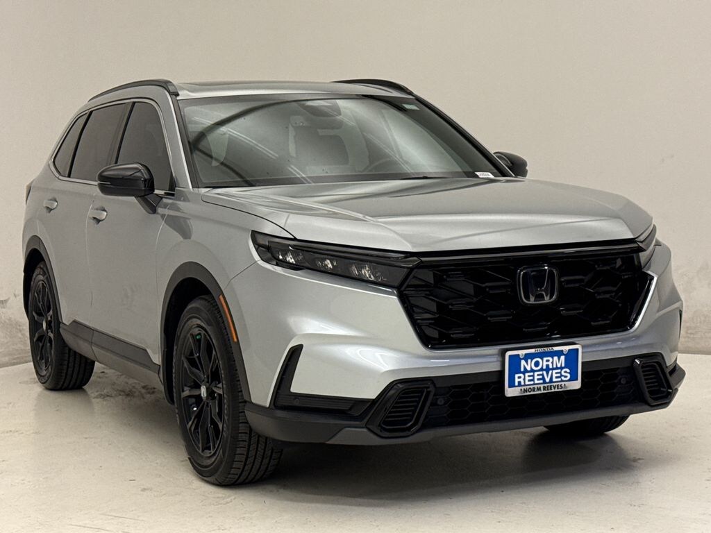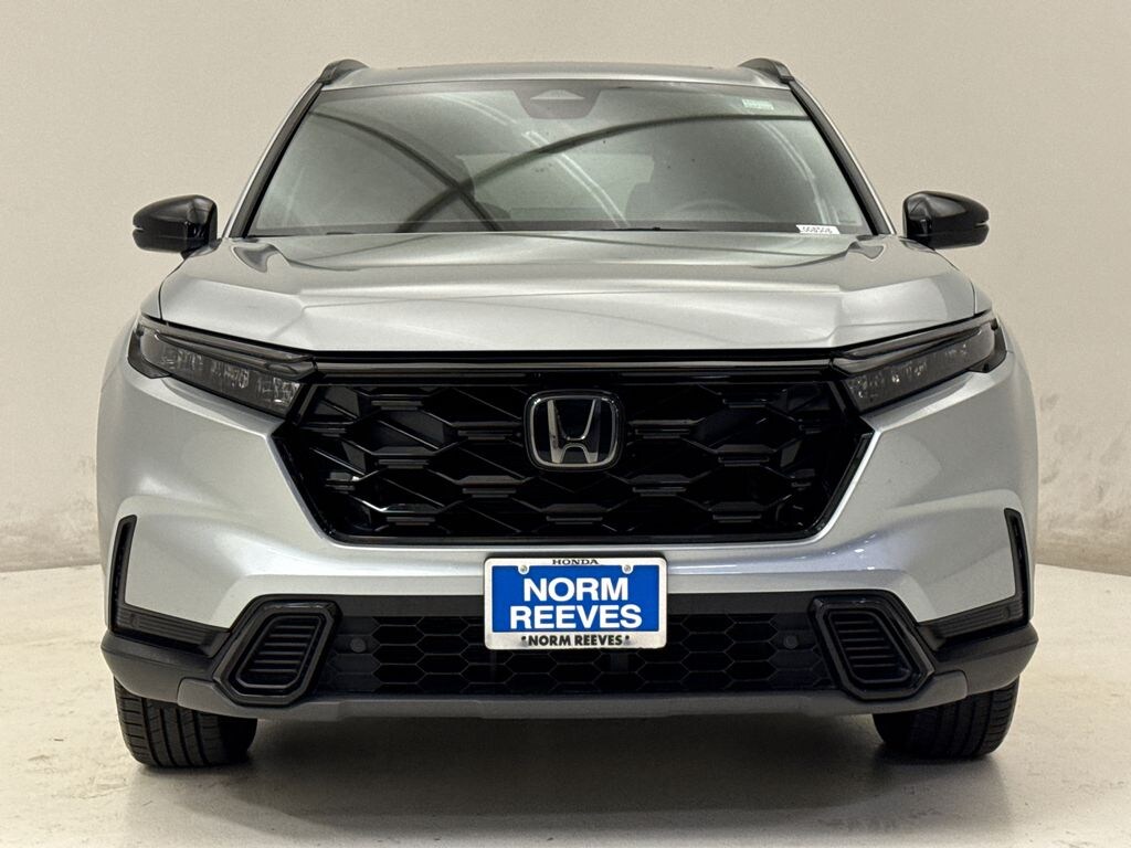 This 2025 Silver Honda CR-V Hybrid Sport-L FWD is well equipped and includes these features and benefits: CR-V Hybrid Sport-L, 2.0L I4 DOHC 16V, eCVT, FWD, Silver, Black Leather, 4-Wheel Disc Brakes, 8 Speakers, ABS brakes, Adaptive Cruise Control: Adaptive Cruise Control (ACC) with Low-Speed Follow, Air Conditioning, Alloy wheels, AM/FM radio: SiriusXM, Auto High-beam Headlights, Auto-dimming Rear-View mirror, Automatic temperature control, Blind Spot Information (BSI) System warning, Brake assist, Bumpers: body-color, Compass, Delay-off headlights, Driver door bin, Driver vanity mirror, Dual front impact airbags, Dual front side impact airbags, Electronic Stability Control, Exterior Parking Camera Rear, Four wheel independent suspension, Front anti-roll bar, Front Bucket Seats, Front Center Armrest, Front dual zone A/C, Front reading lights, Fully automatic headlights, Heated door mirrors, Heated Front Bucket Seats, Heated front seats, Illuminated entry, Knee airbag, Leather Seat Trim, Leather Shift Knob, Leather steering wheel, Low tire pressure warning, Memory seat, Occupant sensing airbag, Outside temperature display, Overhead airbag, Overhead console, Panic alarm, Passenger door bin, Passenger vanity mirror, Power door mirrors, Power driver seat, Power Liftgate, Power moonroof, Power passenger seat, Power steering, Power windows, Radio data system, Radio: 320-Watt AM/FM/HD/SiriusXM Audio System, Rear anti-roll bar, Rear reading lights, Rear seat center armrest, Rear side impact airbag, Rear window defroster, Rear window wiper, Remote keyless entry, Security system, Speed control, Speed-sensing steering, Speed-Sensitive Wipers, Split folding rear seat, Spoiler, Steering wheel mounted audio controls, Telescoping steering wheel, Tilt steering wheel, Traction control, Trip computer, Turn signal indicator mirrors, Variably intermittent wipers, and Wheels: 18" Berlina Black Alloy. CR-V Hybrid Sport-L, 2.0L I4 DOHC 16V, eCVT, FWD, Silver, Black Leather. Clean CARFAX.