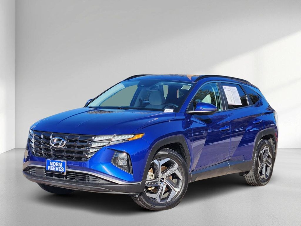 This 2023 Intense Blue Hyundai Tucson SEL FWD is well equipped and includes these features and benefits: Cargo Package (Cargo Net, Cargo Tray, and First Aid Kit), Convenience Package (10.25" Digital Instrument Cluster, Auto-Dimming Interior Mirror w/Homelink, Dual Automatic Temperature Control, H-Tex Seat Trim, Leather-Wrapped Shift Knob, Leather-Wrapped Steering Wheel, LED Interior Lights (Room, Map), Option Group 02, Power Sunroof, Ultrasonic Rear Occupant Alert, and Wheels: 19" x 7.5J" Machine-Face Finish Alloy), Tucson SEL, 2.5L I4 DGI DOHC 16V LEV3-ULEV70 187hp, 8-Speed Automatic with SHIFTRONIC, FWD, Intense Blue, Gray Cloth, 3.648 Axle Ratio, 4-Wheel Disc Brakes, 6 Speakers, ABS brakes, Air Conditioning, Alloy wheels, AM/FM radio: SiriusXM, Apple CarPlay & Android Auto, Auto High-beam Headlights, Brake assist, Bumpers: body-color, Cargo Cover, Carpeted Floor Mats, Delay-off headlights, Driver door bin, Driver vanity mirror, Dual front impact airbags, Dual front side impact airbags, Electronic Stability Control, Emergency communication system: Blue Link Connected Car Service (3-year complimentary subscription), Four wheel independent suspension, Front and Rear Mudguards, Front anti-roll bar, Front Bucket Seats, Front Center Armrest, Front reading lights, Fully automatic headlights, Heated door mirrors, Heated Front Bucket Seats, Heated front seats, Illuminated entry, Low tire pressure warning, Occupant sensing airbag, Outside temperature display, Overhead airbag, Overhead console, Panic alarm, Passenger door bin, Passenger vanity mirror, Power door mirrors, Power driver seat, Power Liftgate, Power steering, Power windows, Radio data system, Radio: AM/FM/HD/SiriusXM Audio System, Rear anti-roll bar, Rear seat center armrest, Rear window defroster, Rear window wiper, Remote keyless entry, Roof rack: rails only, Security system, Speed control, Split folding rear seat, Spoiler, Stain & Odor Resistant Cloth Seat Trim, Steering wheel mounted audio controls, Tachometer, Telescoping steering wheel, Tilt steering wheel, Traction control, Trip computer, Turn signal indicator mirrors, Variably intermittent wipers, and Wheels: 17" x 7.0J" Alloy. Tucson SEL, 2.5L I4 DGI DOHC 16V LEV3-ULEV70 187hp, 8-Speed Automatic with SHIFTRONIC, FWD, Intense Blue, Gray Cloth. Clean CARFAX. CARFAX One-Owner.