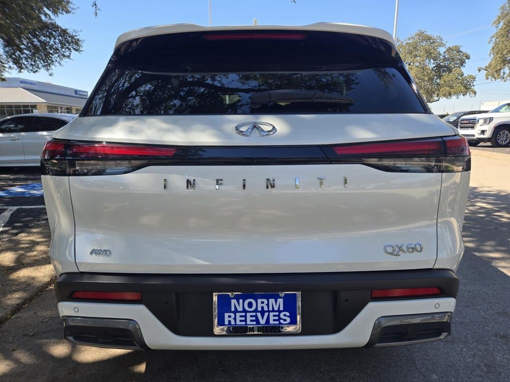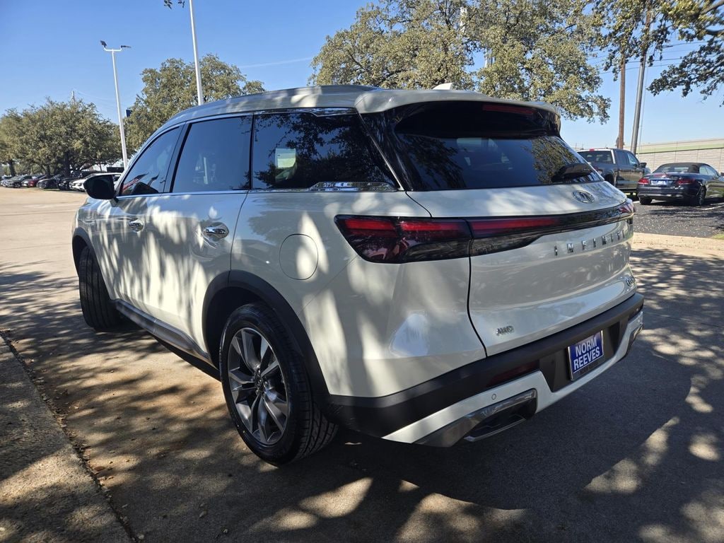 This 2022 Majestic White INFINITI QX60 LUXE AWD is well equipped and includes these features and benefits: QX60 LUXE, 3.5L V6, AWD, Majestic White, Graphite Leather, Memory seat, Navigation system: INFINITI InTouch Navigation, 3rd row seats: bench, 4-Wheel Disc Brakes, 4.334 Axle Ratio, 9 Speakers, ABS brakes, Air Conditioning, Alloy wheels, AM/FM radio: SiriusXM, Anti-whiplash front head restraints, Auto High-beam Headlights, Auto-dimming door mirrors, Auto-dimming Rear-View mirror, Automatic temperature control, Brake assist, Bumpers: body-color, Delay-off headlights, Driver door bin, Driver vanity mirror, Dual front impact airbags, Dual front side impact airbags, Electronic Stability Control, Emergency communication system, Four wheel independent suspension, Front anti-roll bar, Front Bucket Seats, Front Center Armrest, Front dual zone A/C, Front reading lights, Fully automatic headlights, Garage door transmitter: HomeLink, Heated & Cooled Front Bucket Seats, Heated door mirrors, Heated front seats, Heated steering wheel, Illuminated entry, Knee airbag, Leather Shift Knob, Leather steering wheel, Leather-Appointed Seating Surfaces, Low tire pressure warning, Occupant sensing airbag, Outside temperature display, Overhead airbag, Overhead console, Panic alarm, Passenger door bin, Passenger vanity mirror, Power door mirrors, Power driver seat, Power Liftgate, Power moonroof, Power passenger seat, Power steering, Power windows, Radio data system, Radio: AM/FM Audio System, Rain sensing wipers, Rear air conditioning, Rear anti-roll bar, Rear reading lights, Rear seat center armrest, Rear side impact airbag, Rear window defroster, Rear window wiper, Reclining 3rd row seat, Remote keyless entry, Roof rack: rails only, Security system, Speed control, Speed-sensing steering, Speed-Sensitive Wipers, Split folding rear seat, Spoiler, Steering wheel memory, Steering wheel mounted audio controls, Tachometer, Telescoping steering wheel, Tilt steering wheel, Traction control, Trip computer, Turn signal indicator mirrors, Variably intermittent wipers, Ventilated front seats, and Wheels: 20" x 8J Sporty Machined Aluminum Alloy. QX60 LUXE, 3.5L V6, AWD, Majestic White, Graphite Leather, Memory seat, Navigation system: INFINITI InTouch Navigation.