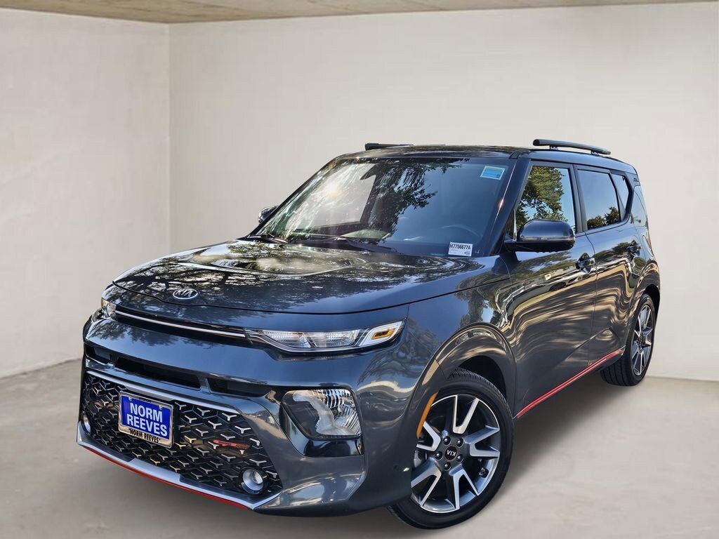 This 2021 Gravity Gray Kia Soul GT-Line FWD is well equipped and includes these features and benefits: Soul GT-Line, 2.0L I4 MPI DOHC 16V LEV3-SULEV30 147hp, Gravity Gray, Power moonroof, 4-Wheel Disc Brakes, 6 Speakers, ABS brakes, Air Conditioning, Alloy wheels, AM/FM radio, Apple CarPlay & Android Auto, Brake assist, Bumpers: body-color, Carpeted Floor Mats, Delay-off headlights, Driver door bin, Driver vanity mirror, Dual front impact airbags, Dual front side impact airbags, Electronic Stability Control, Exterior Parking Camera Rear, Front anti-roll bar, Front Bucket Seats, Front Center Armrest, Front fog lights, Front reading lights, Front wheel independent suspension, Fully automatic headlights, Leather Shift Knob, Leather steering wheel, Low tire pressure warning, Occupant sensing airbag, Outside temperature display, Overhead airbag, Overhead console, Passenger door bin, Passenger vanity mirror, Power door mirrors, Power steering, Power windows, Premium Cloth Seat Trim, Radio: AM/FM/MP3 Audio System, Rear window defroster, Rear window wiper, Remote keyless entry, Speed control, Speed-sensing steering, Split folding rear seat, Sport steering wheel, Steering wheel mounted audio controls, Tachometer, Telescoping steering wheel, Tilt steering wheel, Traction control, Trip computer, Variably intermittent wipers, and Wheels: 18" x 7.5 Alloy. Soul GT-Line, 2.0L I4 MPI DOHC 16V LEV3-SULEV30 147hp, Gravity Gray, Power moonroof. Clean CARFAX. Awards: