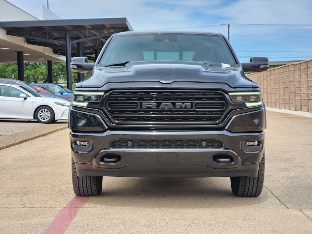 This 2023 Diamond Black Crystal Pearlcoat Ram 1500 Limited 4WD is well equipped and includes these features and benefits: Night Edition (Accent Color Door Handles, Accent Color Premium Power Mirrors, Auto-Dimming Exterior Driver Mirror, Black Day Light Opening Moldings, Black Exterior Truck Badging, Black Grille Surround Texture 7 Black, Black Headlamp Bezels, Black Painted Exterior Mirrors Caps, Body Color Front Bumper, Body Color Rear Bumper w/Step Pads, Convex Wide-Angle Exterior Mirror Insert, Dual Exhaust w/Black Tips, Exterior Mirrors Courtesy Lamps, Exterior Mirrors w/Heating Element, Exterior Mirrors w/Memory, Exterior Mirrors w/Supplemental Signals, harman/kardon 19 Speaker Premium Sound, Power-Folding Mirrors, RAM Grille Badge - Black, Sport Performance Hood, Tow Hooks, Tri-Fold Tonneau Cover, and Wheels: 22" x 9" Black Aluminum), Quick Order Package 27M Limited, Bed Utility Group (MOPAR 4 Adjustable Cargo Tie-Down Hooks), Limited Level 1 Equipment Group (Heads-Up Display, MOPAR Spray In Bedliner, Adaptive Cruise Control w/Stop & Go, Digital Rearview Mirror, Lane Keep Assist, LED CHMSL Lamp, Parallel & Perp Park Assist w/Stop, ParkSense Front/Rear Park Assist w/Stop, Pedestrian Emergency Braking, Pick-Up Box Lighting, Power Running Boards, Surround View Camera System, Tailgate Ajar Warning Lamp, and Wireless Charging Pad), Apple CarPlay/Android Auto, Heated Second Row Seats, HEMI Badge, Memory seat, 10 Speakers, 3.21 Rear Axle Ratio, 33 Gallon Fuel Tank, 4 Way Front Headrests, 4-Wheel Disc Brakes, 48V Belt Starter Generator, ABS brakes, Active Noise Control System, Adjustable pedals, Air Conditioning, Alloy wheels, AM/FM radio: SiriusXM with 360L, Anti-Spin Differential Rear Axle, Audio memory, Auto High-beam Headlights, Auto-dimming door mirrors, Auto-dimming Rear-View mirror, Auto-leveling suspension, Automatic temperature control, Black Exterior Mirrors, Bodyside moldings, Brake assist, Bucket Seats, Bumpers: chrome, Chrome Exterior Mirrors, Compass, Delay-off headlights, Dome Dual LED Reading Lamp, Driver door bin, Driver Seat Memory, Driver vanity mirror, Dual front impact airbags, Dual front side impact airbags, Dual Rear Exhaust w/Bright Tips, Dual-Pane Panoramic Sunroof, Electronic Stability Control, Front anti-roll bar, Front Bucket Seats, Front Center Armrest w/Storage, Front dual zone A/C, Front fog lights, Front License Plate Bracket, Front reading lights, Front Seat Back Map Pockets, Front wheel independent suspension, Full Length Premium Floor Console, Fully automatic headlights, Garage door transmitter, Genuine wood console insert, Genuine wood dashboard insert, Genuine wood door panel insert, Heated door mirrors, Heated Front Seats, Heated front seats, Heated rear seats, Heated Steering Wheel, Heated steering wheel, Heavy-Duty Engine Cooling, Illuminated entry, Leather steering wheel, LED Dome/Reading Lamp, Low tire pressure warning, Navigation System, Occupant sensing airbag, Outside temperature display, Overhead airbag, Overhead console, Panic alarm, ParkView Rear Back-Up Camera, Passenger door bin, Passenger vanity mirror, Passive Tuned Mass Damper, Pedal memory, Power 4-Way Driver Lumbar Adjust, Power 4-Way Passenger Lumbar Adjust, Power 8-Way Driver & Passenger Seats, Power door mirrors, Power driver seat, Power passenger seat, Power steering, Power windows, Premium Leather Trimmed Bucket Seats, Radio data system, Radio: Uconnect 5 Nav w/12.0" Display, Rain sensing wipers, Rear 60/40 Folding Split Recline Seat, Rear anti-roll bar, Rear seat center armrest, Rear step bumper, Rear window defroster, Remote keyless entry, Security system, Speed control, Split folding rear seat, Steering wheel mounted audio controls, Tachometer, Telescoping steering wheel, Tilt steering wheel, Traction control, Trailer Brake Control, Trip computer, Turn signal indicator mirrors, Variably intermittent wipers, Ventilated Front Seats, Ventilated front seats, Ventilated Rear Seats, Ventilated rear seats, Voltmeter, and Wh