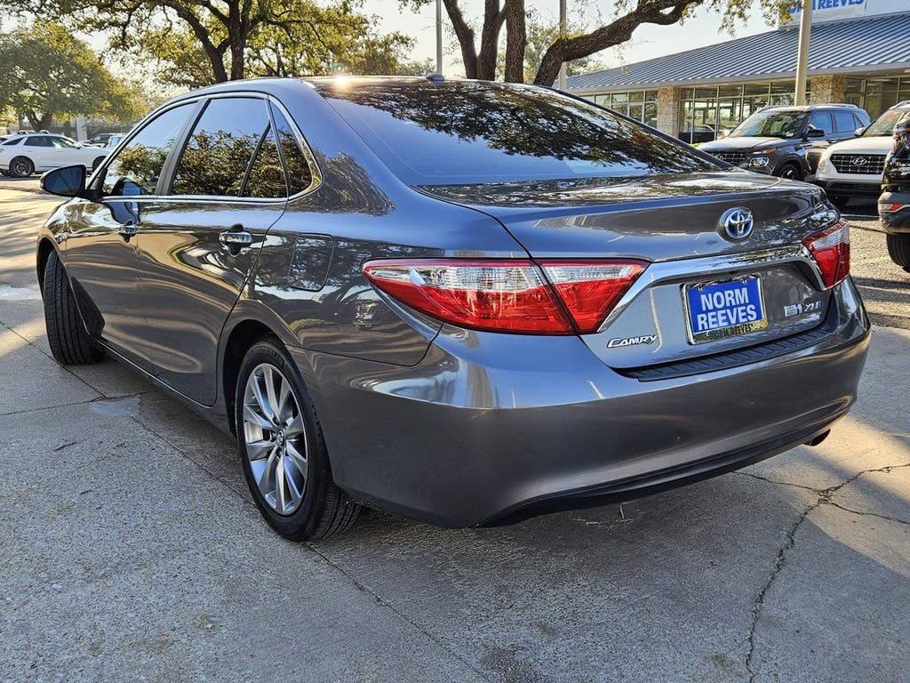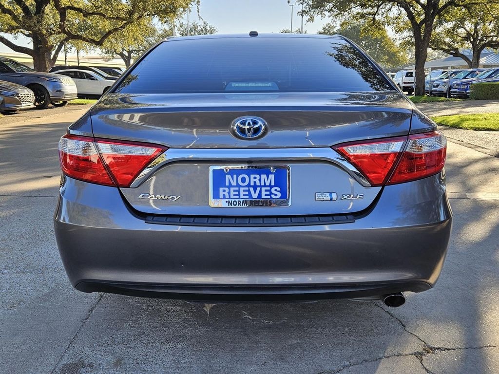 This 2016 Gray Toyota Camry Hybrid XLE FWD is well equipped and includes these features and benefits: Camry Hybrid XLE, 2.5L I4 Hybrid DOHC, 4-Wheel Disc Brakes, 6 Speakers, 7.0J x 17" Alloy Wheels, ABS brakes, Air Conditioning, Alloy wheels, AM/FM radio, Auto-dimming Rear-View mirror, Automatic temperature control, Brake assist, Bumpers: body-color, CD player, Chrome wheels, Compass, Delay-off headlights, Driver door bin, Driver vanity mirror, Dual front impact airbags, Dual front side impact airbags, Electronic Stability Control, Exterior Parking Camera Rear, Four wheel independent suspension, Front anti-roll bar, Front Bucket Seats, Front Center Armrest, Front dual zone A/C, Front reading lights, Fully automatic headlights, Heated door mirrors, Heated front seats, Illuminated entry, Knee airbag, Leather Seat Trim, Leather steering wheel, Low tire pressure warning, Multi-Stage Heated Front Bucket Seats, Occupant sensing airbag, Outside temperature display, Overhead airbag, Overhead console, Panic alarm, Passenger door bin, Passenger vanity mirror, Power door mirrors, Power driver seat, Power passenger seat, Power steering, Power windows, Radio: Entune Audio Plus, Rear anti-roll bar, Rear seat center armrest, Rear side impact airbag, Rear window defroster, Remote keyless entry, Speed control, Speed-sensing steering, Split folding rear seat, Steering wheel mounted audio controls, Telescoping steering wheel, Tilt steering wheel, Traction control, Trip computer, and Variably intermittent wipers. Camry Hybrid XLE, 2.5L I4 Hybrid DOHC. Clean CARFAX.